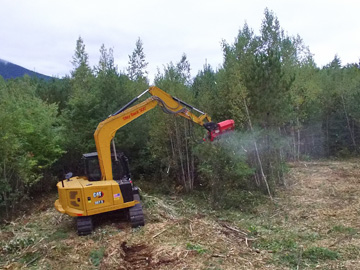 Brush Cutting - If you have existing views or open areas that need periodic brush cutting, we can cut and chip as needed. Excavators equipped with mulching heads are a safe and effective way to remove brush and invasive species for fire protection and view preservation. |